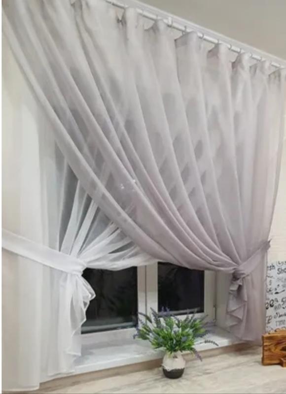Шторы для кухни или комнаты в отличном качестве. Материал шифон Турция. Из вехна нашит тесьма с готовыми петлями. Подойдет на карниз от 1.50 до 2.00 м. Высота изделия 1.75 м. Возможен заказ в других цветах и размерах.