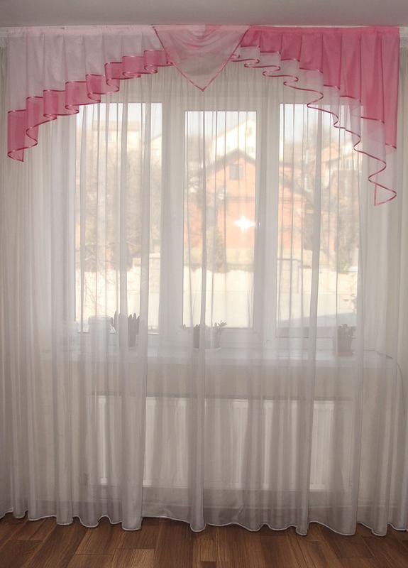 Ламбрекен firanka дуга шифон карниз 200см розовый с белым (70_4_2м)