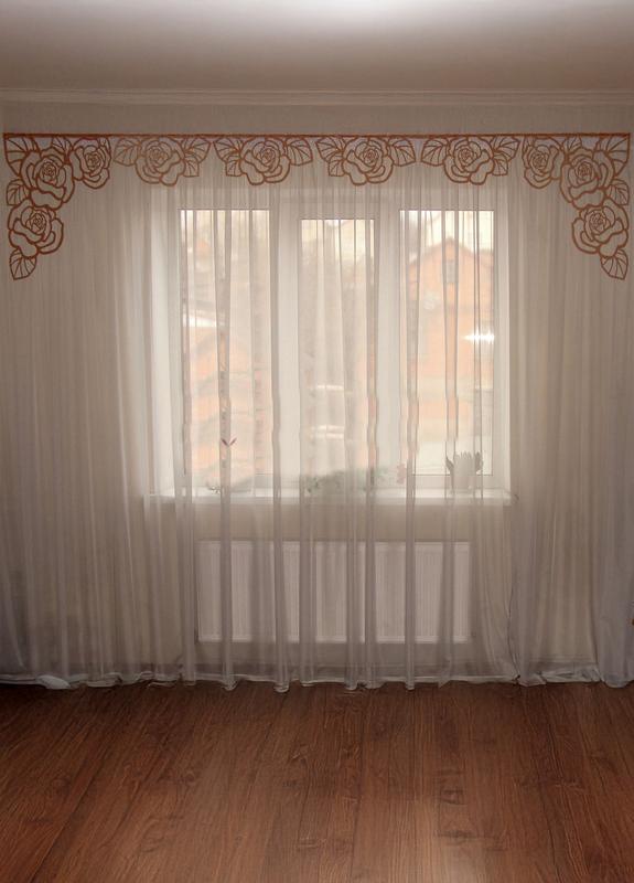 Длина по карнизу 3м. Высота по краям 70см, высота в центре 24см. Вариант на тесьме. Возможен вариант на липучке. Тюль в комплект не входит. Ткань Турция.