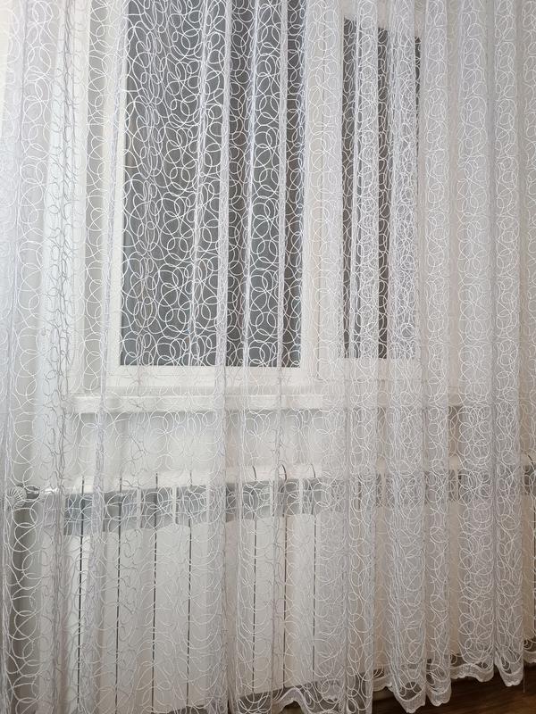 Тюль с вышивкой белая, гардина в зал, спальню, с кордовой нитью, висота 2,80м
