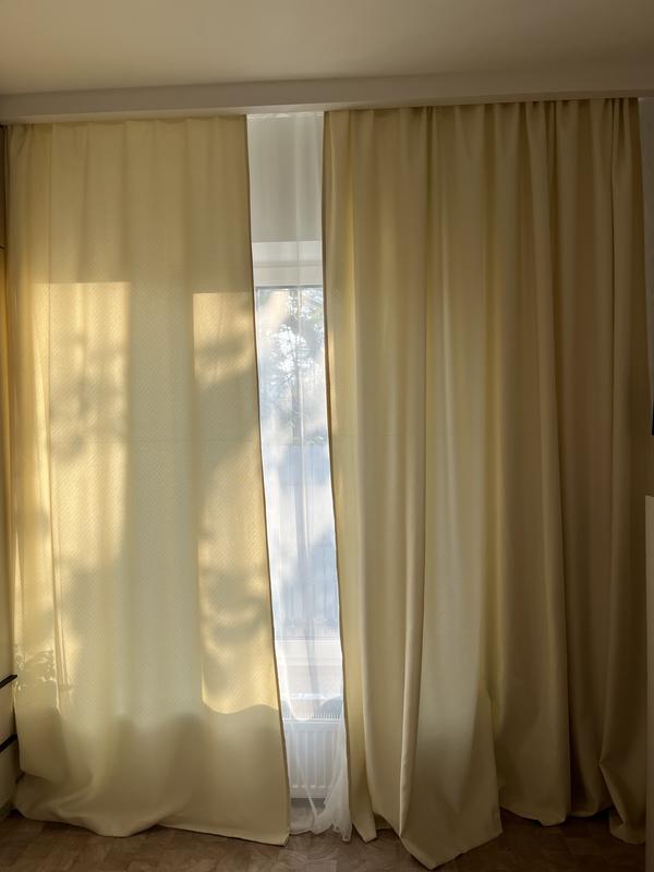 Продам нові штори, дуже гарного світло- жовтого кольору. В комплекті 2 шт, кожна ширина по 2,5 м , довжина 2,65 см Приємні на дотик
