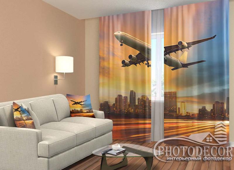 Фотошторы "самолет" 2,5м*2,9м (2 полотна по 1,45м), тесьма