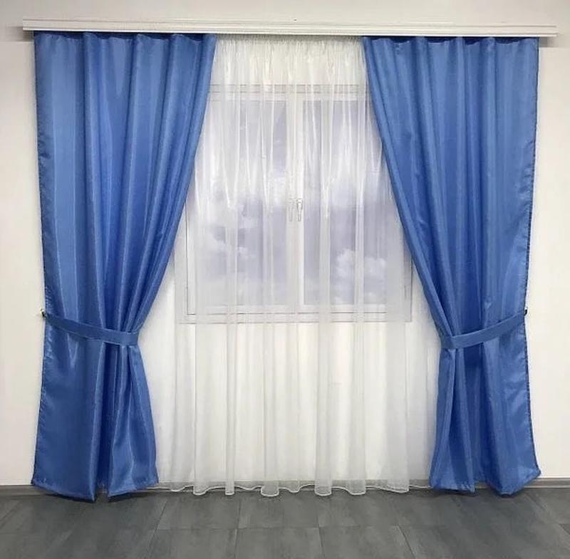 Готовый комплект штор монорей с подхватами 150х270 з тюлем кристалон 400х270 цвет голубой