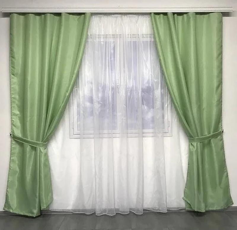 Готовый комплект штор монорей с подхватами 150х270 з тюлем кристалон 400х270 цвет салатовы...