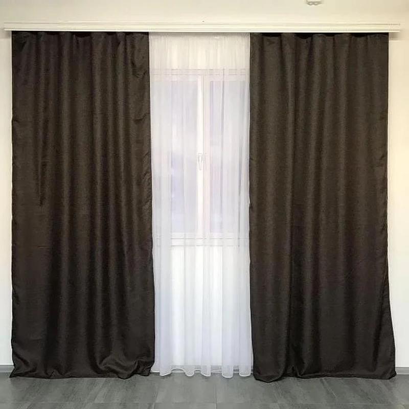 Роскошные, тяжелые шторы подарят великолепную домашнюю атмосферу тем, кто хочет создать уют и наслаждаться красотой своего домашнего очага. Идеально подходят для ресторана, отеля, зала, спальни, гостиной, детской комнаты и кухни на карниз 300-350 см. Характеристики: Материал: лен блэкаут / blackout; Ширина штор: 150 см (+/-3см), Высота штор: 270 см (+/-3см); Материал тюля: шифон Ширина тюля: 400 см; Высота тюля: 270 см; В набор входит: шторы (2 шт); тюль (1 шт) Способ подвеса: тесьма. ВНИМАНИЕ! К данному комплекту штор также можно приобрести тюль ― вуаль, размер 400х270 см. Указываете в примечании. Данная модель изготовлена из материала Блэкаут. Это очень плотная ткань, которая практически не пропускает свет. Такие шторы подходит тем, у кого окна выходят на солнечную сторону. Если у Вас очень ярко светит солнце, шторы блэкаут / blackout помогут Вам: ✔️избежать нагревания воздуха в комнате летом; ✔️затемнить комнату, чтоб уложить ребенка на обеденный сон; ✔️создать полумрак, чтоб комфортно смотреть телевизор в дневное время. Шторы блэкаут / blackout не подходят тем, у кого: ✔️окна выходят на север и мало солнечного света в комнате; ✔️низкие потолки, т.к. комната будет казаться темной; ✔️слабо держаться карнизы, т.к. эти шторы очень плотные и тяжелые. Если в Вашей комнате небольшие окна и мало солнечного света, специалисты по домашнему текстилю рекомендуют покупать шторы из жаккарда. Ведь они менее плотные и тяжелые. Преимущества: ✔️ очень легко стираются и гладятся; ✔️ практически не мнутся; ✔️ не выцветают на солнце; ✔️ стойкие к износу, замечательно сохраняют форму; ✔️ антистатическая защита (не накапливают пыль); ✔️ дополнят любой интерьер. Рекомендации по уходу: 1️⃣ машинная / ручная стирка при температуре не более 30°C; 2️⃣ не отбеливать; 3️⃣ не сушить в сушильной машине; 4️⃣ гладить при температуре не более 130°C. Элегантные шторы непременно станут украшением для вашего дома. С помощью таких штор вы сможете защитить спальню или гостиную от солнечного дневного света, а также разнообразить интерьер комнаты. ***Реальный цвет изделия может незначительно отличаться от фото (из-за несовершенства цветопередачи вашего устройства).