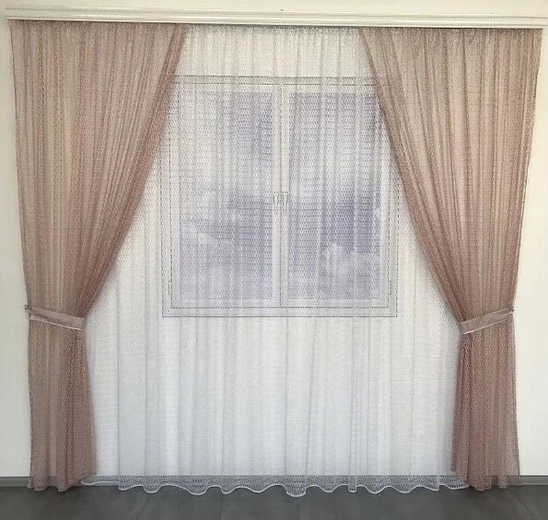 Комплект штор с тюлем на тесьме ткань сетка идеально подходят в зал, спальню, гостиную, детскую комнату или на кухню на карниз 250-350 см. Характеристики: Размер штор: ширина 200 см, высота 270 см; Материал штор: сетка; Размер тюли: ширина 400 см, высота 270 см; Материал тюли: сетка; В набор входит: шторы (2 шт) и тюль; Способ подвеса: тесьма. С ее помощью, Вы сможете сделать шторы шире или уже, а также легко повесить изделие на карниз, используя крючки. Преимущества: - легко стираются, - практически не мнутся; - легко гладятся, - не выцветают на солнце; - стойкие к износу, - замечательно сохраняют форму; - антистатическая защита (не накапливается пыль на поверхности ткани), - дополнят любой интерьер. Рекомендации по уходу: - машинная / ручная стирка при температуре не более 40°C, - не отбеливать, - не сушить в сушильной машине, - гладить при температуре не более 150°C. Элегантные шторы помогут Вам: - освежить комнату; - подчеркнуть ремонт; - дополнить интерьер; - создать уют в своем доме; - поднять настроение. Наши товары непременно станут украшением для Вашего дома, подарят великолепную атмосферу и помогут создать красивый домашний очаг. *** Реальный цвет штор может незначительно отличаться от фото (из-за несовершенства цветопередачи мониторов)