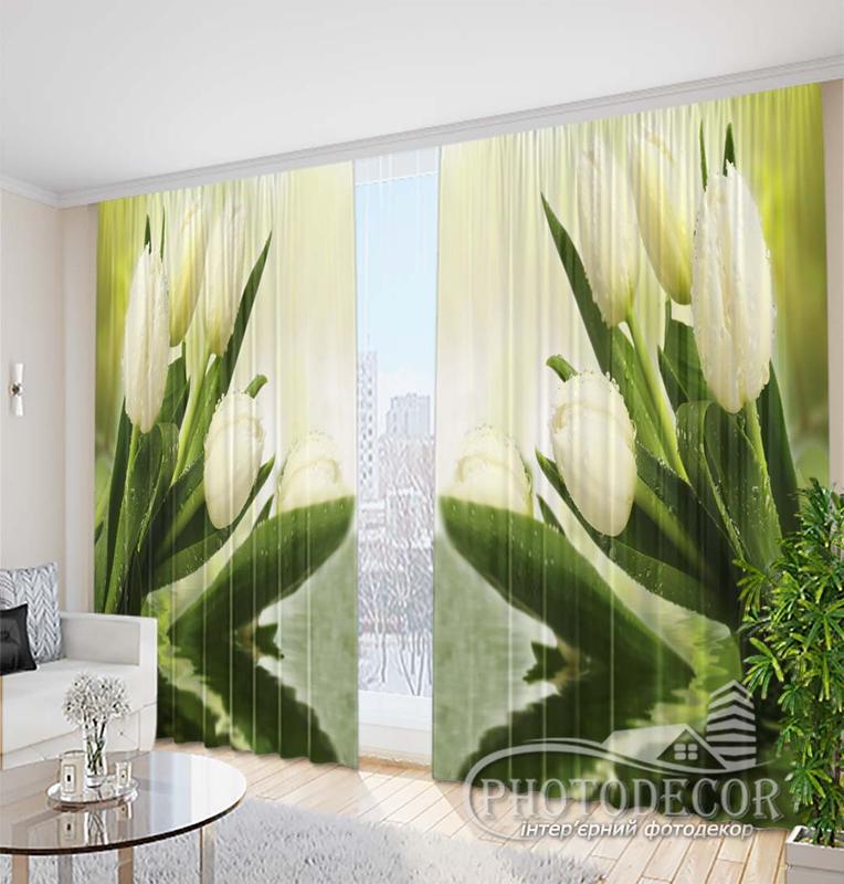 3d фото шторы "белые тюльпаны в воде" 2,7м*2,9м (2 полотна по 1,45м), тесьма