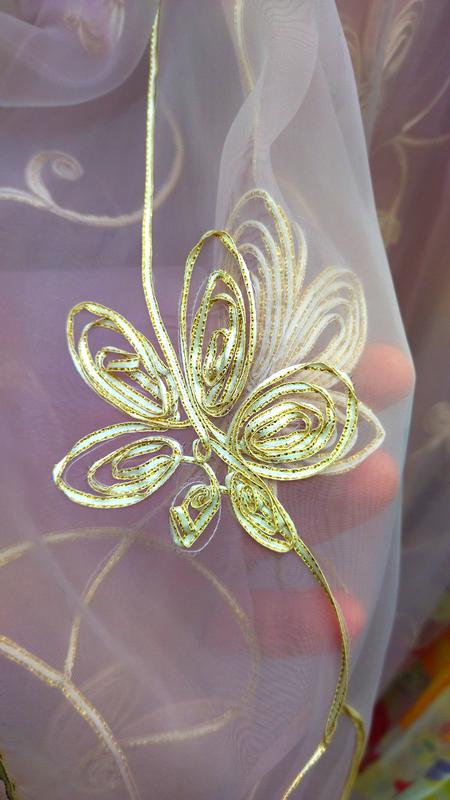 Висота 2.8м, ширину набираєте. Відрізається з рулону. Нова, не підшита, без тасьми. Ціна вказана за метр погонний. Напівпрозора тканина схожа на органзу. Візерунок до основи пришито нитками. Відправка післяплатою після невеликої передоплати на карту ПриватБанку.