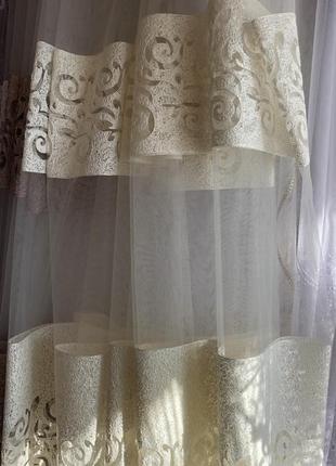 Наша шикарная тюль с очень красивым выглядкой. Тюль отшита на широкой тесьме. Размер тюли 250х 400. Цена указана за тюль в заданном размере, возможен отшив в любом размере по вашим замерам. По всем вопросам пишите.