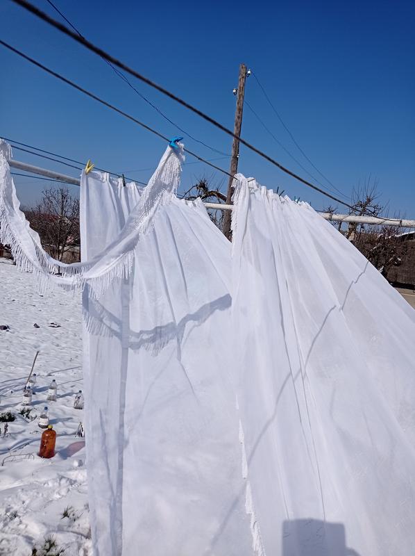 Мыряю одну, друга така сама. Ширина верху-110см. низу-230см. висота-240см. заокруглена з одного боку, э завязки.