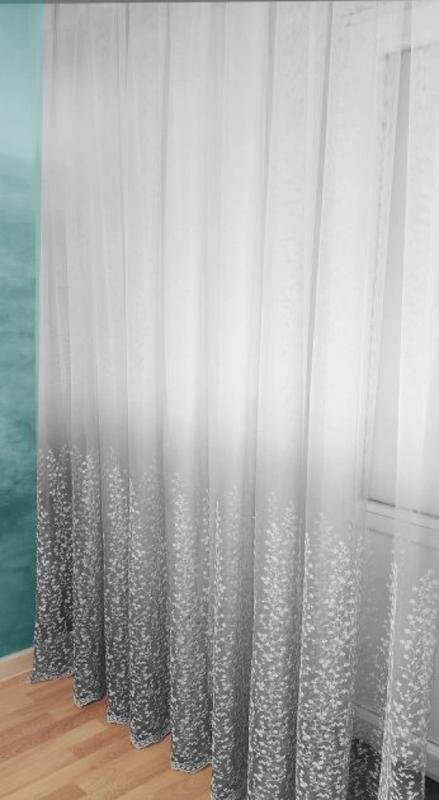 Тюль на грек-сетке Декор-Ин Флора Градиент 300см ширина, высота на выбор: S - 2.4 метри; M - 2.5 метри; L - 2.6 метри; XL - 2.7 метри; XXL -2.8 метри. Полностью готовое изделие. Цена указана за изделие с учётом набора ткани, фурнитуры и работы. Сверху притачана хлопковая шторная тесьма, шириной 6 см, имеющая два ряда петель . Равномерной сборки — карандаш.