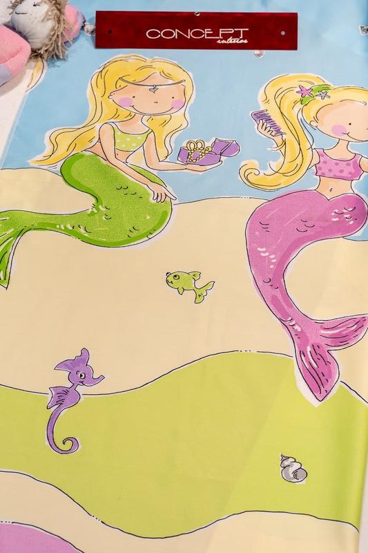 Тканина для штор в дитячу. Сатин з русалками. Іспанія. 2,8 м висота. Ціна за метр погонний. Склад - бавовна/поліестр. Штори в дитячу, штори у вітальню, штори в спальню.