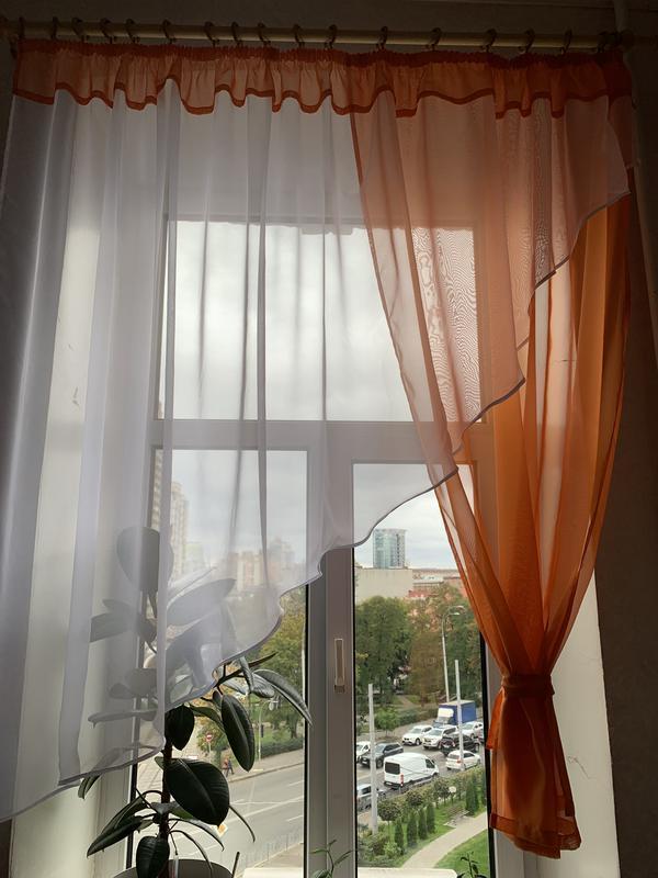 Тюль, занавески, гардини белая с оранжевым на кухню ширина 3 метра в несобранном виде высота 1.65 на карниз 1.50 или 1,80