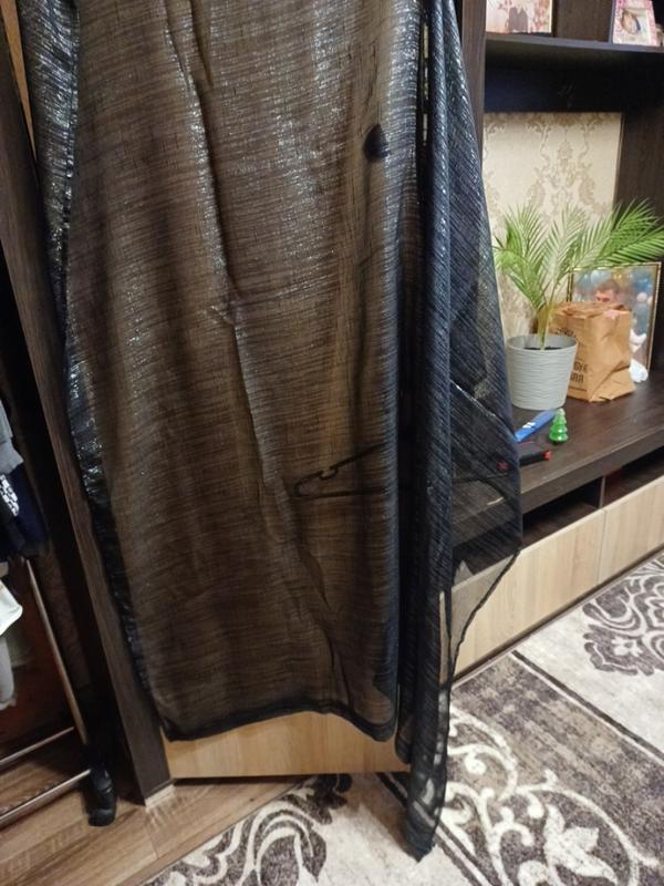 Черная укороченная тюль-1,40×1,80, 2шт,прошитая серебряной нитью, можно использовать как шторы, качество хорошее.