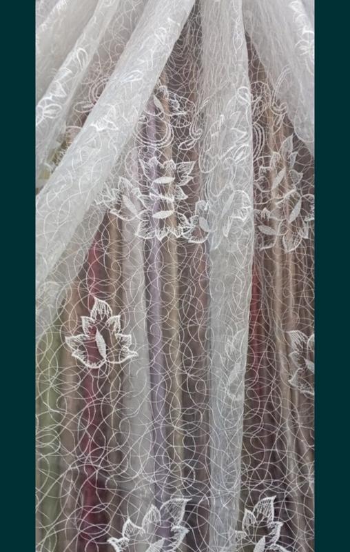 Тюль основа нейлон с вышивкой атласной нитью . Высота 2.70 ширину набираете . Тюль с вышивкой в белом цвете . Остались 3 отреза по 5 метров. Украсит Ваши окна . Отправляем