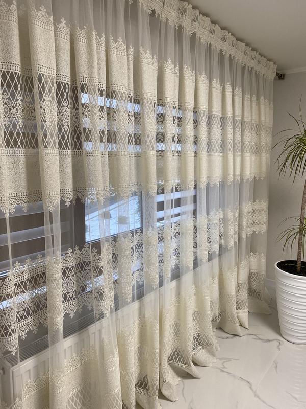 Готовая сшитая в складку занавеска В одной занавеске 8 м тюли Сшита на 4-х метровый карниз Высота 2,30 Продаются две вместе Молочного цвета