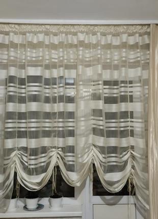 Новый оригинальный тюль. высота регулируется. на верх пришита тесьма с петлями, подойдет на любой карниз