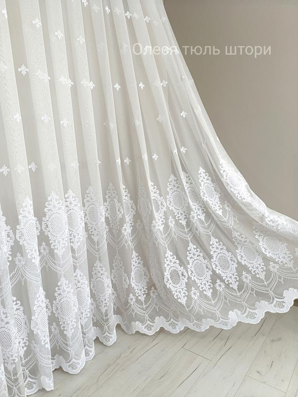 Невероятно красивая и изысканная моделька тюля премиум класса с вышивкой копдовым шнуром 🔥 Высокая роскошная вышивка по низу и невероятно нежная к самому верху ❗ Данная моделька тюля станет настоящим украшением Вашего дома 😍 Основа бамбук лучшего качества, цвет белый Тюль устойчив к воздействию солнечных лучей, не прихотлив в уходе ❗ Есть услуга пошива по Вашим размерам на все виды тесьмы ина ручную выкладку 👍 Производитель Турция Цена указана за 1 м погоночный