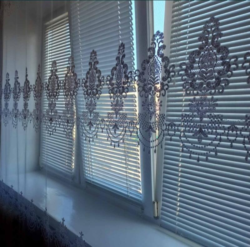 Материал:фатин Цвет: белый Ширина:2,4 м Высота:2,8 м Утолитель: кружево. Сверху на широкой ленте. Красивая тюль которая подойдет в зал/спальню.Отличного качества. Она Новая принимали себе не угадали с размером.