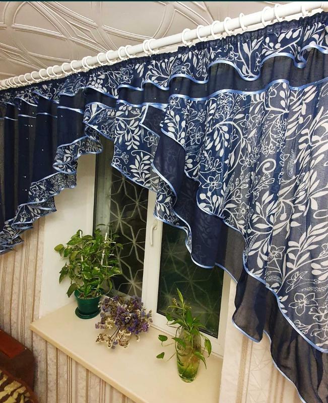 Стан идеален. Ткань синий батист с блестками и цветной тонкий батист. Длина 3,20 можно стянуть на карниз до 1.5 метра. Высота сторон 1 метр. Нашита на тасьму. Ткань нежная, желательно ручная стирка.