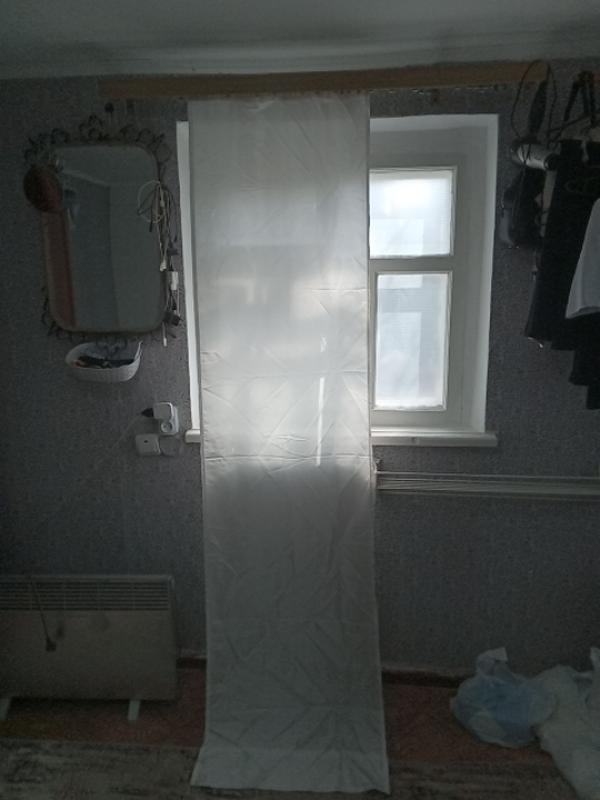 ткань не светится, как атлас, но не атлас,белая, без рисунка, недостатки на фото последние два- посередине,тип защелки- липучка длина 60 см висоиа 227 см