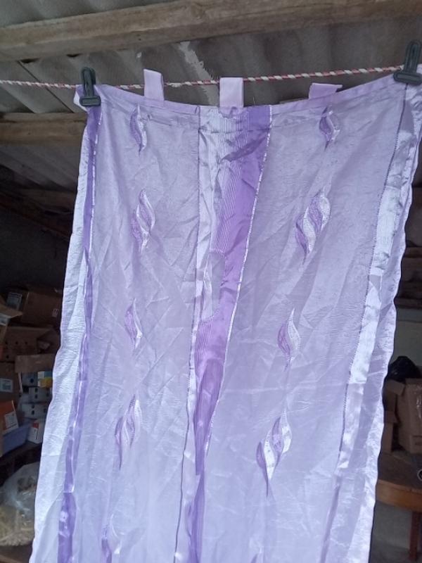 двухслойная тюль на кухню,цвет сиреневый,насыщенный йгарный, не такой как на фото,стан хорош, внутренняя часть в виде датки...вверху под органзой имеет проколы, разработала фото...а так может гаоно послужить..также принимали такие вещи на пошив нарядов детям на новогодние и другие праздники ширина 66 см длина 233 см