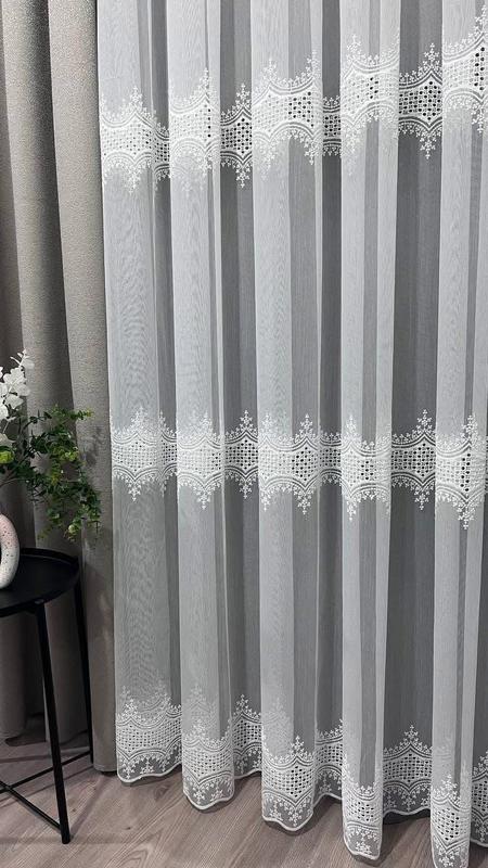 Тюль на основе бамбук с полосой по низу в белом цвете производитель туренья
