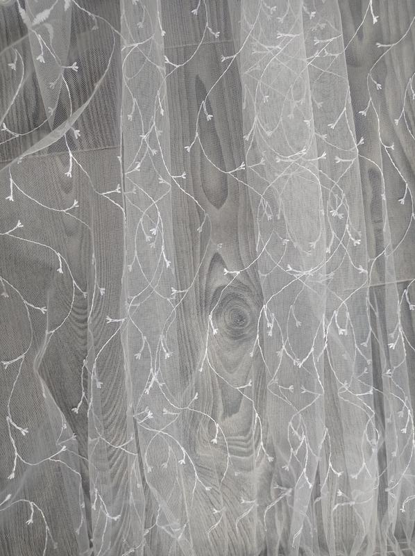 Тюль фатиновая с вышивкой белая, ширина 5 м, высота 2,5 м на тесьме