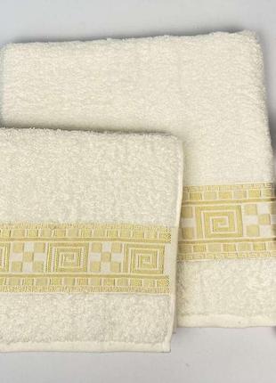 Великолепный комплект махровых полотенец. Нежное на ощупь банное полотенце в комплекте с полотенцем для рук и лица выполнены из натурального хлопкового волокна. Полотенца с однотонным окрасом и оригинальным рисунком станут красивым украшением ванной комнаты. Состав: 100% хлопок Комплектация набора: полотенце 50х90 см - 1 шт. полотенце 70х140 см - 1 шт. Производитель: Cottonize(Турция).