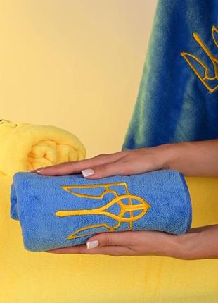 Набор полотенец для лица 2 шт в наборе 1 шт синий, 1 шт желтый. Размер 48*92 см Микрофибра Вышивка Герб Украины