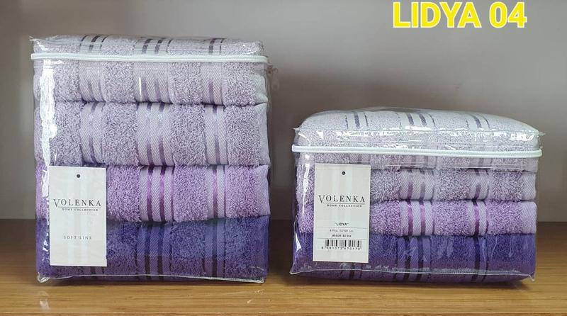 Полотенца Volenka Состав из 100% органического хлопка позволяет отлично впитывать влагу. Полотенце хорошо стирается и не меняет цвет. Надолго остается мягким и нежным. Хорошо упаковано, будет отличным подарком родным 🎁 Тканини: махра Производитель: Турция 🏷️Размеры: Упаковка 4 шт (Лице)-50x90 см Упаковка 4 шт (Баня)- 70x140 см