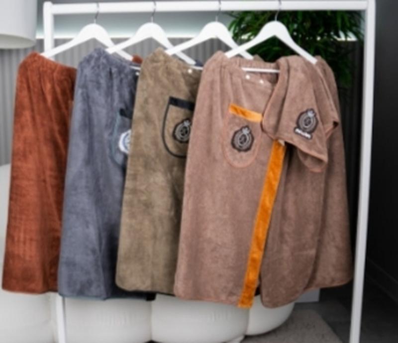 Набор для сауны мужского хорошего качества, ткань-микрофибра нежная и приятная на ощупь, быстро сохнет. В наборе полотенце размером 150*75 на резинке и кнопках + полотенце 33*70. Различные цвета, спрашивайте сброшу в личку. пересылкиваю НП, Укрпоштой.