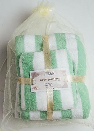 Набор полотенец, хорошего качества, ткань- микрофибра нежная и приятная на ощупь. В наборе два полотенца размер 33*70 и размер 140*70. Читайте в разделе обо мне. Пересылаю НП, Укрпоштою.