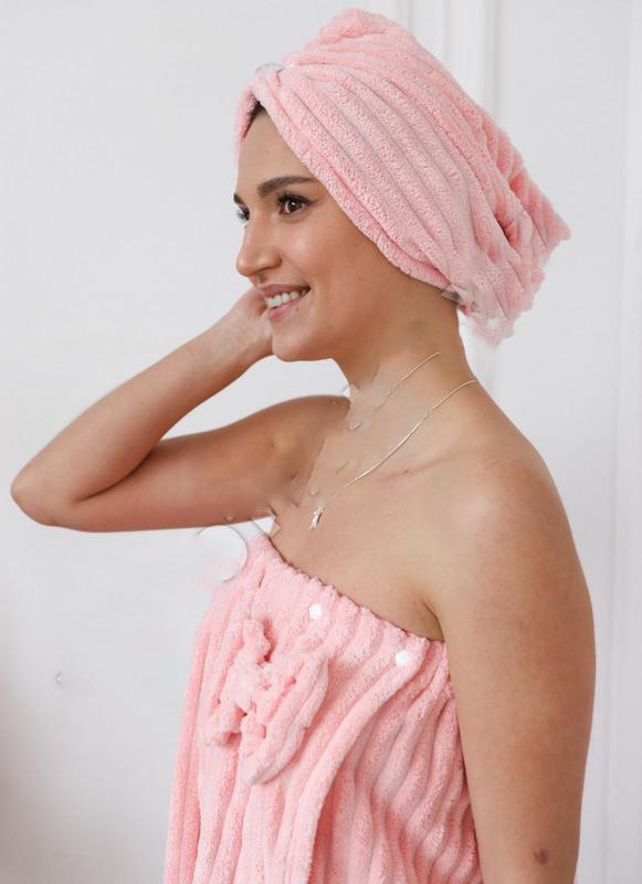 Набор полотенце халат женский Шарпей микрофибра + шапочка банный Цвет: пудра-персик, шоколад, светло-серый, розовый, вешочный-молок Размер 140*80см + шапочка подарочная упаковка Комплект микрофибра плотная в подарочной упаковке