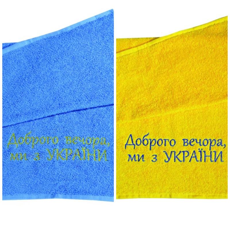 Полотенце махровое с вышивкой "доброго вечора, ми з україни" 70х140