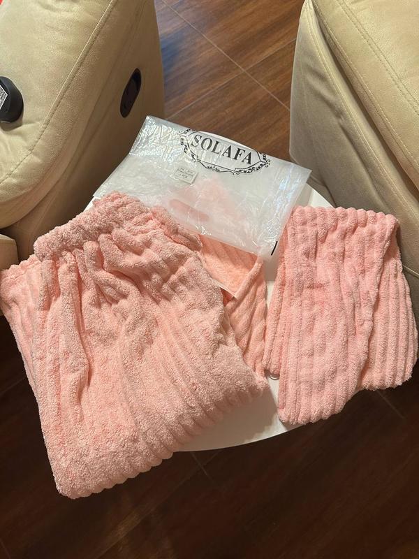 Новий набір рушник на липучці та тюрбан. Рожевий колір.