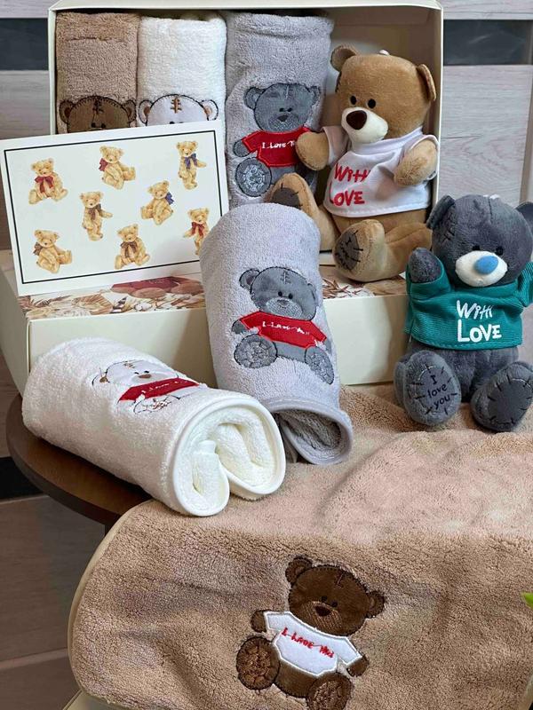 Набор Бокс • Полотенца 3 шт (25×50 см) – мягкие и практичные для дома • Игрушка-брелок мишка TEDI – милый подарок, который всегда будет с тобой 💸Цена: 600 грн