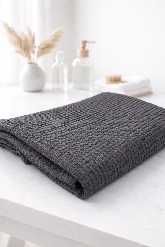 Вафельні банні рушники чудово вбирають вологу. Дуже зручні у повсякденному житті, приємно використовувати після прийому душу чи ванни. Ви можете використовувати вафельний рушник для лазні, сауни або басейну. Рушник банний 50*90 Тканина: 100% бавовна, Туреччина Щільність: 220 г/м2 Колір: темно-сірий