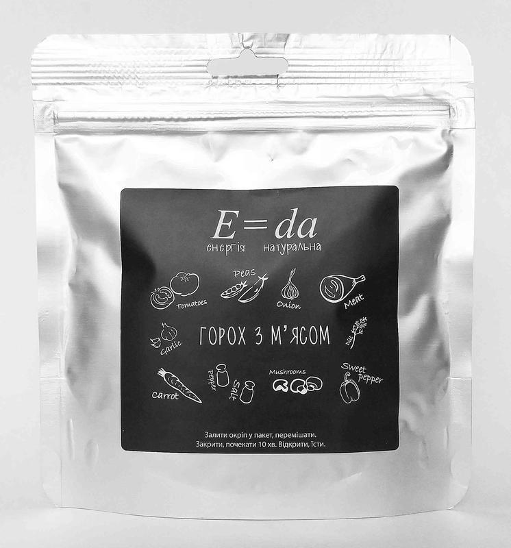 Блюдо быстрого приготовления. Состав: гороховые хлопья, варено-сушеная курица, помидор, морковь, лук, грибы, чеснок, перец зеленый сладкий, петрушка, укроп, перец, соль. Способ приготовления: залить в пакет 250-300 мл горячей воды, перемешать, закрыть zip-замок, подождать 8-10 мин. Приготовлено из сушеных продуктов, сохранивших все вкусовые качества натуральных. Не используются усилители вкуса и консерванты. Пищевая ценность порции: белки – 21,7 г, жиры – 2,2 г, углеводы – 39,1 г. Энергетическая ценность: 278,8 кКал. Масса нетто: 90 гр. Выход готового продукта: ок. 350-400 гр. Срок годности: 12 месяцев