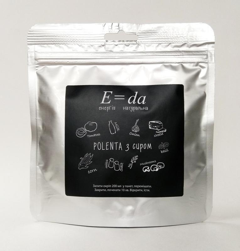 Страва швидкого приготування. Склад: кукурудза, сир твердий витриманий, гриби, цибуля, помідор, сухі вершки, італійські трави, перець чорний, сіль. Спосіб приготування: залити в пакет 200-250 мл гарячої води, перемішати, закрити zip-замок, почекати 10 хв. Приготовлено з сушених продуктів, що зберегли всі смакові якості натуральних. Не використовуються підсилювачі смаку та консерванти. Харчова цінність порції: білки – 14,3 г, жири – 8,4 г, вуглеводи – 50,0 р. Енергетична цінність: 328 кКал. Маса нетто: 100 гр. Вихід готового продукту: ок. 350 мл. Термін придатності: 6 місяців.
