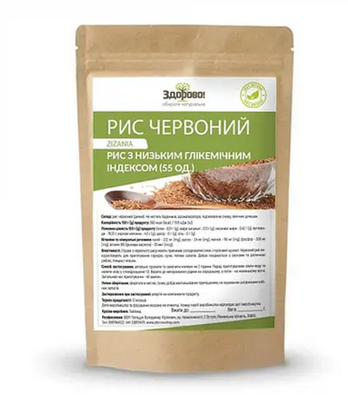 Состав: рис красный (дикий). Не содержит красителей, ароматизаторов, усилителей вкуса, химических добавок. Калорийность 100 г продукта: 357,23 ккал / 1513,39 кДж. Питательная ценность 100 г продукта: белки - 14.7 г, жиры общие - 1,07 г, насыщенные жиры - 0 г, углеводы - 68,7 г, пищевые волокна - 7 г, природные сахара - 2 г, соль - 0 г. Свойства: Способствует формированию крепкого и здорового организма. Укрепляет кости и помогает предотвращать артрит. Способствует нормализации сна, и снижению артериального давления. Благодаря высокому содержанию железа нешлифованный рис хорошее средство для профилактики анемии, также помогает стабилизировать гормональный фон и улучшить половое здоровье. Способ применения: одну меру крупы тщательно промыть водой, добавить две степени холодной воды, довести до кипения, варить кашу на слабом огне 30-40 минут. Для усиления вкуса крупу можно прожарить на сковородке. Красный рис подходит для приготовления каш и супов. Его используют в качестве гарнира. Условия хранения: хранить в чистых, сухих, хорошо вентилируемых помещениях, не зараженных вредителями хлебных запасов. Предостережение при применении: аллергия на компоненты продукта. Не следует употреблять в больших количествах женщинам в период лактации. Срок годности: 12 месяцев. Страна производитель: Тайланд. Код: 205175