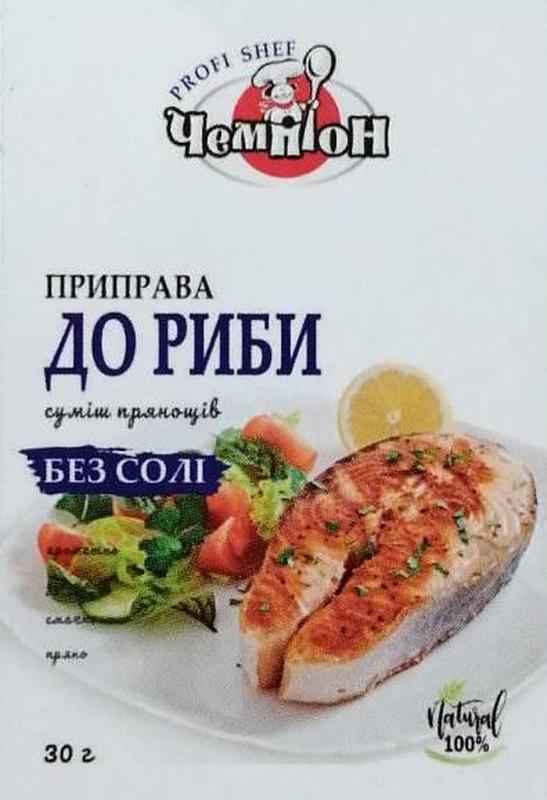 Используется для приготовления рыбных блюд. Состав: Чеснок сушеный, перец красный молотый паприка, лук репчатый сушеный, куркума сушеная молотая, кориандр сушеный молотый, перец черный молотый, лимон сушеный молотый, базилик сушеный, имбирь сушеный молотый, чабер сушеный, перец красный сушеный. Может содержать следы горчицы, кунжута, сельдерея, глютена.
