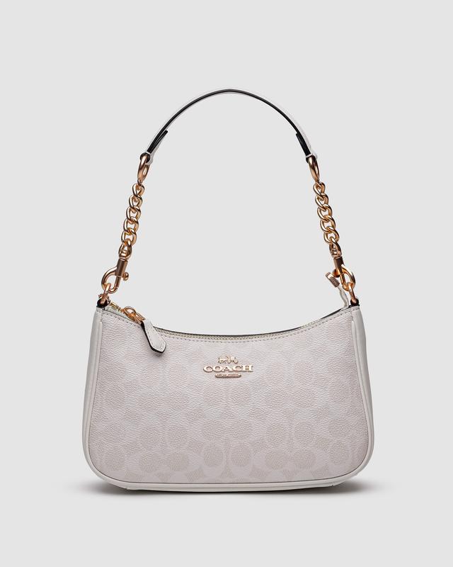 💎 coach teri white shoulder bag in signature canvas 24.5 x 14 x 6 см