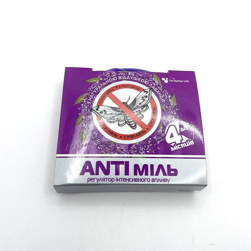Молі Антимоль Регулятор від харчової молі Антимоль з ароматом лаванди ефективно захищає продукти від пошкоджень та зараження молями. Завдяки натуральному аромату лаванди, він не тільки створює перешкоди для розвитку шкідників, але й надає приміщенню приємний, свіжий запах. Простий у використанні, цей засіб підходить для використання в коморах, складах та кухонних приміщеннях, де зберігаються продукти харчування. Він не містить хімічних речовин, що робить його безпечним для людей і домашніх тварин. Один блок регулятора забезпечує тривалий ефект, підтримуючи чистоту і захищеність від молі, що робить його зручним та економічним вибором для боротьби з шкідниками в домашніх умовах.