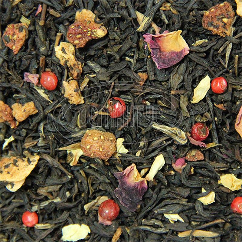 Черный цейлонский чай с лепестками жасмина, розовым перцем и кусочками клубники. Вкусный и полезный, он всегда будет угоден тем, кто чувствителен к стрессу и напряжения. Один из способов заваривания черного ароматизированного чая Чайная ложка чая на 350 мл и еще одна дополнительная - на чайник. Время заваривания: 2-3 минуты при температуре 95 ° C. Особые условия: заваривать 2-3 раза.