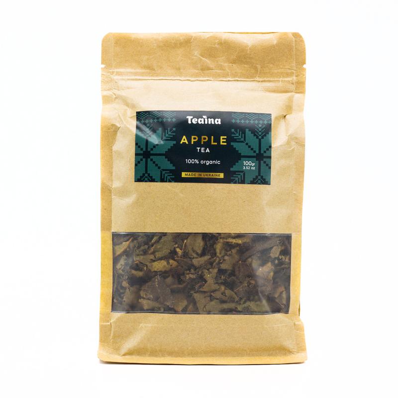 Teaina - Український садовий чай з листя яблуні 100% натуральний без домішок, штучних ароматизаторів та інших добавок Що таке український садовий чай Teaina ? - це унікальний на 100% екологічний чай, виготовлений з листя садових дерев та кущів ( наприклад: вишня, яблуня, малина і т.д.). Такий чай дуже смачний та корисний, його можна пити для зміцнення імунітету та профілактики від багатьох болячок, а також просто тому що він дуже смачний!) При цьому наш чай відрізняється від звичних трав'яних чаїв тим що його можна пити кожного дня як будь який зелений чи чорний чай ( більшість трав'яних чаїв можна пити тільки декілька тижнів щоб не завдати шкоди організму). Чим унікальний чай Teaina? - 100% екологічний - Виготовляється з листя плодових дерев та кущів - Авторська технологія обробки та ферментації - Корисний для організму. Можна вживати щоденно - Сушіння за допомогою сонця без промислового устаткування Зверніть увагу* Чай Teaina - це не просто зібране і висушене листя. Teaina - спеціальний ферментований чай, виготовлений за авторською технологією. (ферментація - це процес, під час якого листя перетворюються на чай і набуває особливого смаку та аромату Трішки деталей про те як ми виготовляємо наш чай Teaina Кожен окремий листок обережно зривається з дерев та сортується. Ми відбираємо тільки свіже зелене листя без різних дефектів, хвороб та шкідників. Ви можете бути впевнені що отримуєте найкращий продукт! Весь процес від збору листя до готового продукту є екологічним та з дотриманням високих стандартів. Наприклад при сушінні чаю ми не використовуємо промислові сушильні машини, а сушимо за допомогою сонця у спеціальних приміщеннях які нагріваються сонцем без впливу прямого сонячного проміння. Це зменшує вплив ультрафіолету і завдяки тому, що ми звертаємо увагу на такі дрібниці ви отримуєте особливий смак та аромат у кожній упаковці чаю. При цьому ми максимально піклуємось про якість продукції та відповідність усім нормам виробництва! Як заварювати чай? Teaina можна заварювати як будь який зелений або чорний чай, процес нічим не відрізняється. Достатньо залити окропом та залишити на декілька хвилин. Насиченість смаку та колір залежить від кількості чаю який ви заварюєте. Рекомендована кількість 5-10 грам на 1 л води.