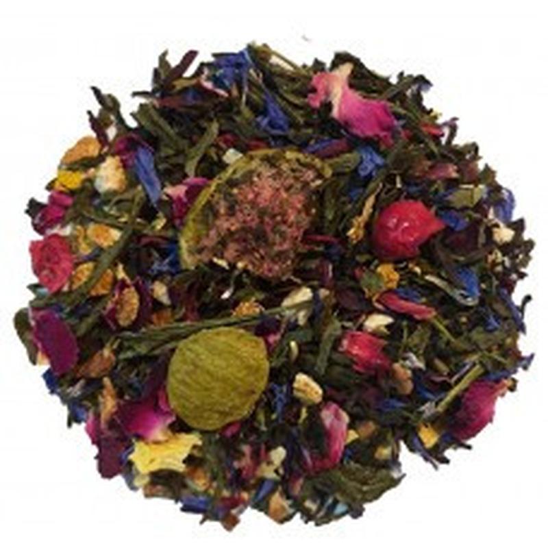 Яркий купаж из черного и зеленого чая с добавлением гибискуса, лепестков базилика, подсолнечника и розы, кусочков инжира, корок апельсина и ягод журавли. Заваренный настой удивляет фруктовым ароматом и ягодным вкусом.
