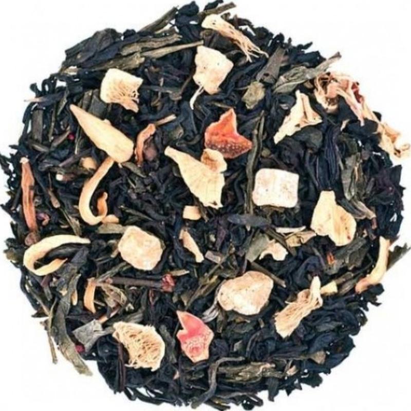 Купаж из черного и зеленого чая с добавлением цукатов ананаса, цветов граната, апельсина, кактуса и бутонов роз. При заваривании получаем настой с ароматом манго.