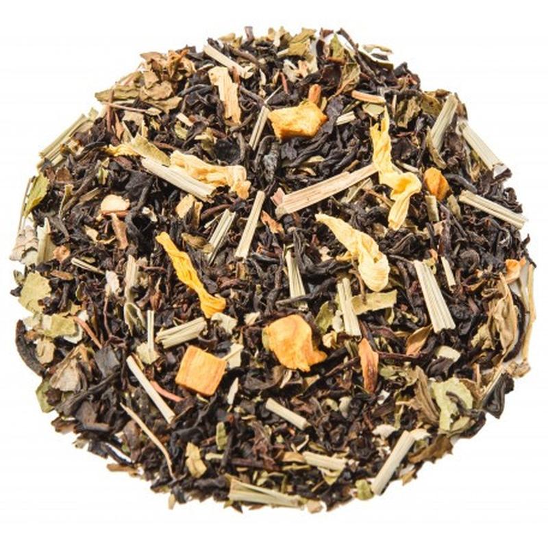 Цейлонский черный чай с листьями ежевики, лепестками подсолнечника, мятой, белым гибискусом, лемонграссом и лакрицей. Настой обладает насыщенным мятно-цитрусовым ароматом и вкусом.