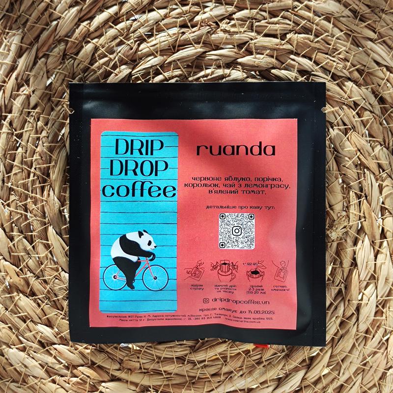 Страна выращивания: Руанда. Сорт кофе: arabica specialty. Способ обработки зерна: мытый. Обжарка: светлая (фильтр). Профиль вкуса: красное яблуко, красная смородина, чай с лемонграсса, вяленый томат. Бальная оценка: 86 Вес кофе в дрипе: 12 грамм. Уточняйте профиль вкуса. Периодически меняется регион/ферма выращивания. ___ Есть услуга фасовки под ваш логотип. Дизайн этикетки в подарок. Цена дрипа при фасовке под ваш логотип не меняется. Простые условия фасовки под ваш логотип: - кратно 30 штук одного вида зерна; - производство занимает от 1 до 3 будних дней; - разработка этикетки от 1 дня